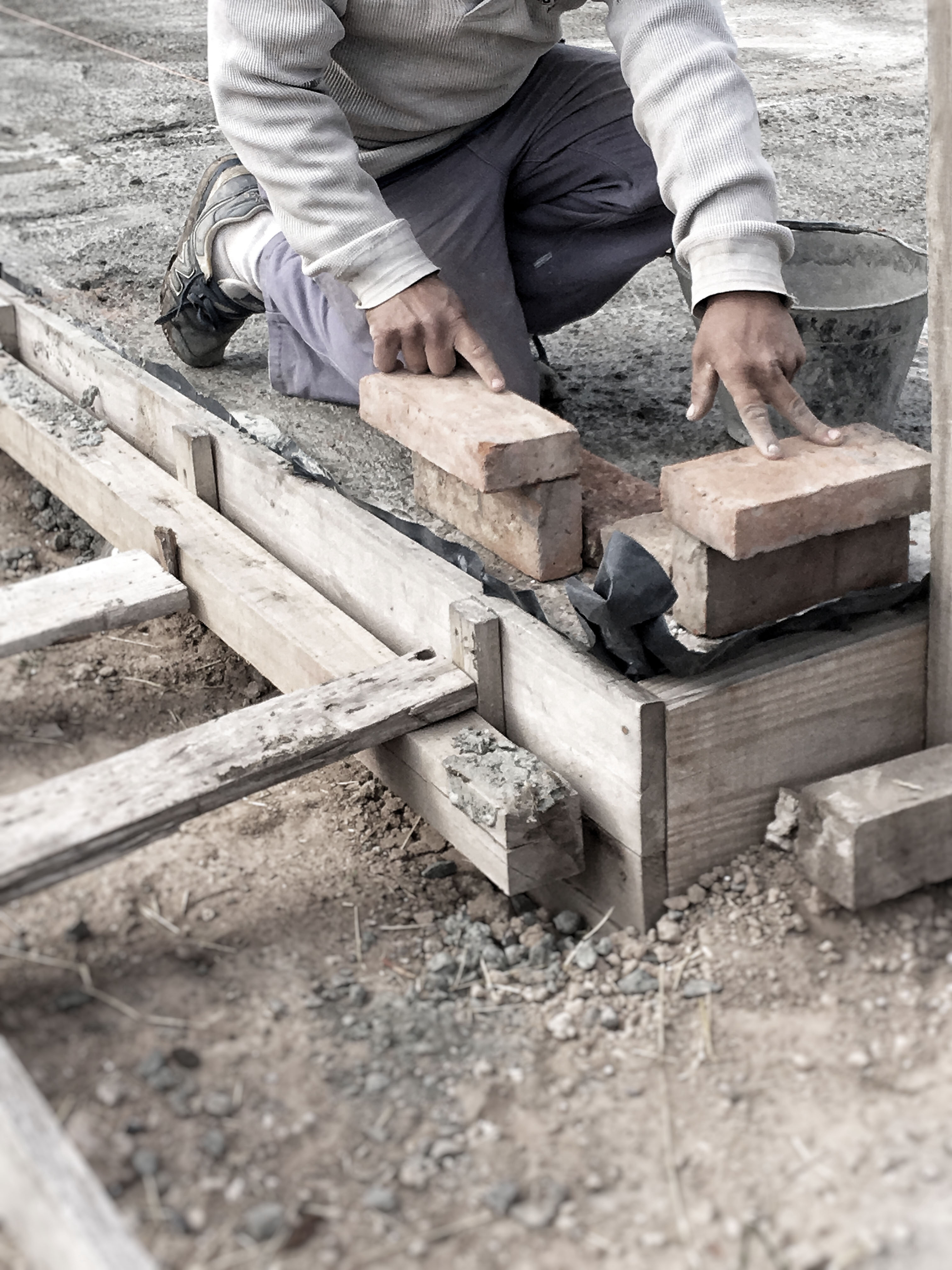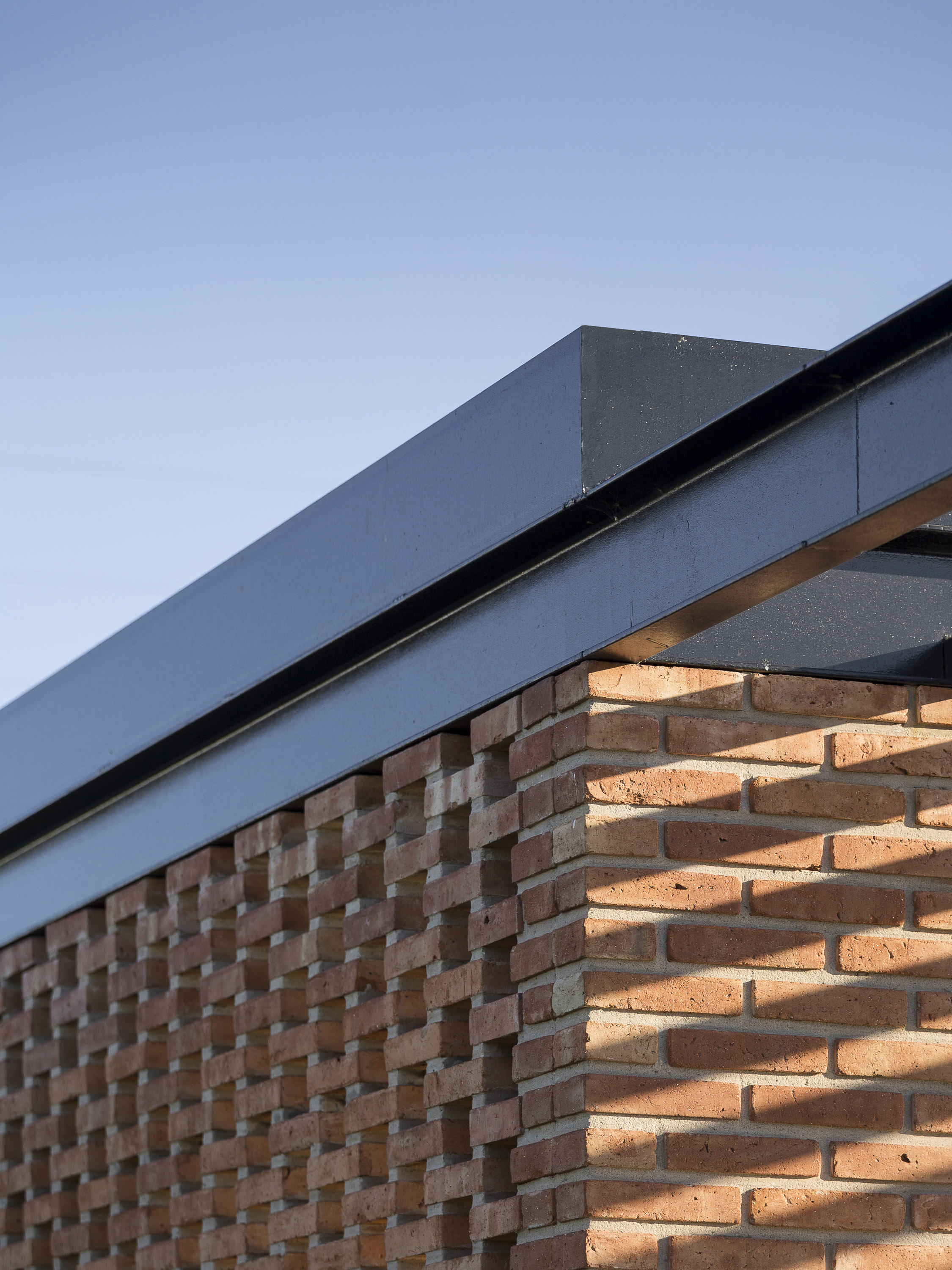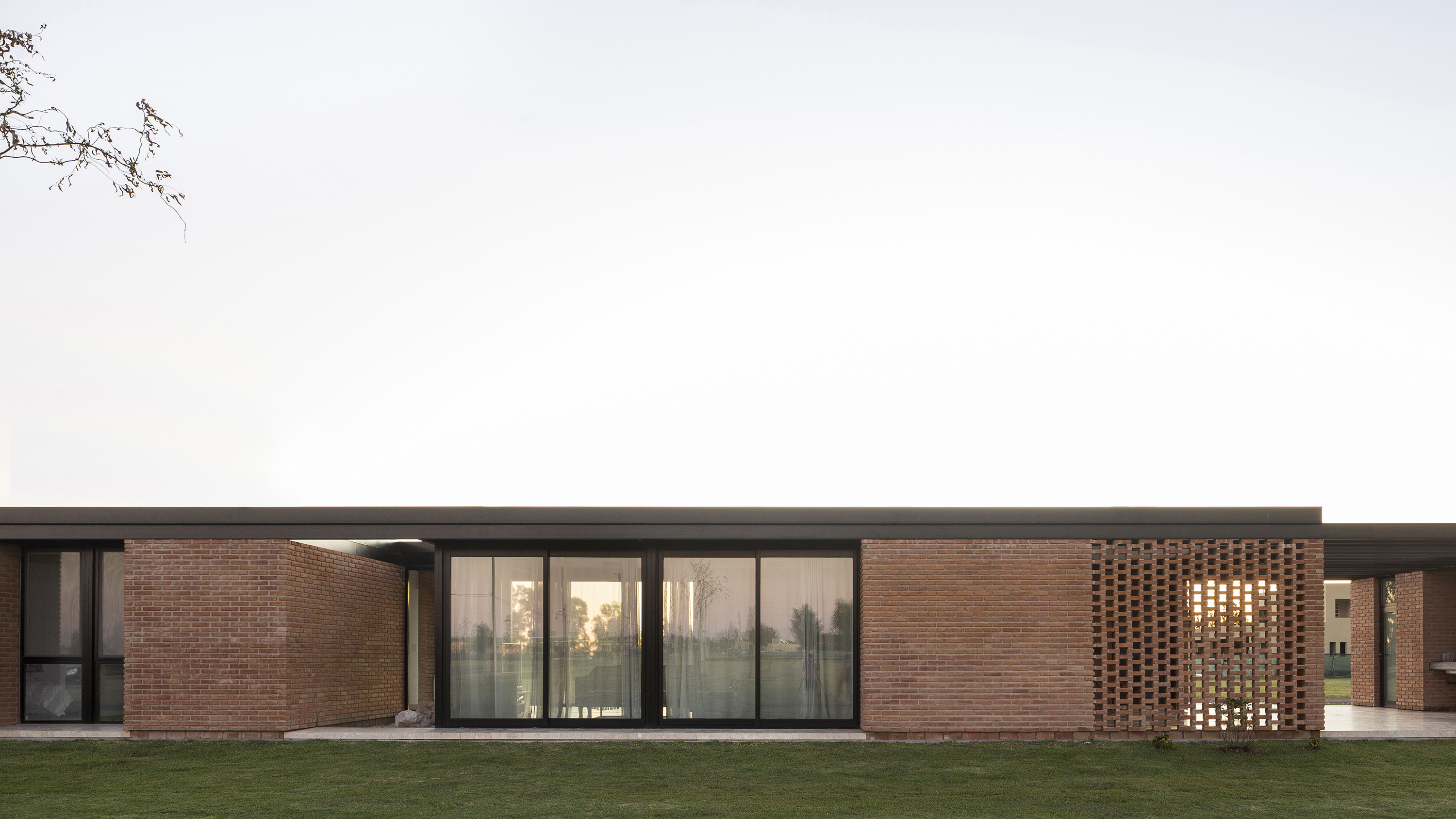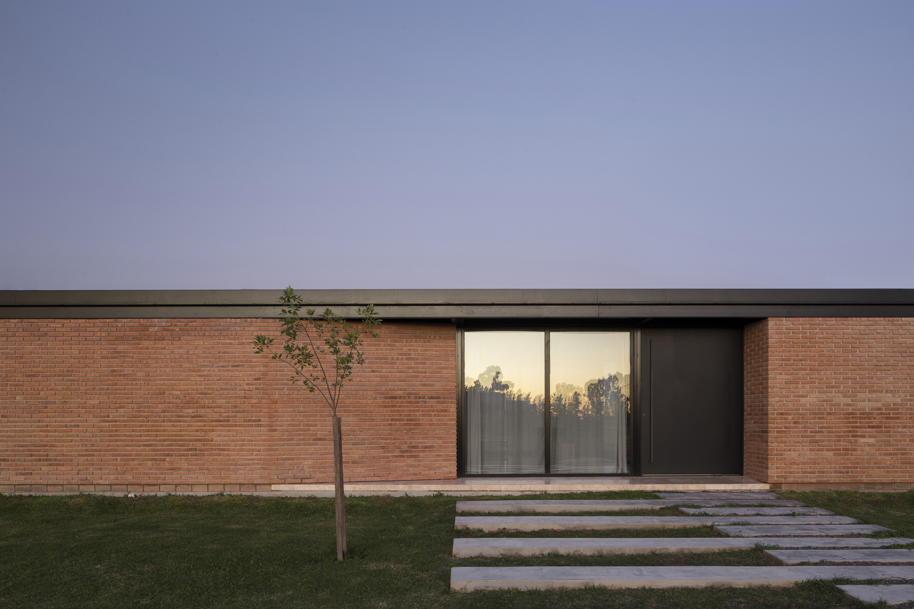 La síntesis en la elección de los materiales fue premisa desde el inicio: ladrillo, piedra, hierro y vidrio. La piedra como único solado, aúna, refuerza la continuidad entre interior y exterior. El ladrillo es envolvente reviste y da carácter. Admite textura, permeabilidad y el doble muro aísla a la vez. El hierro, es esbelto, firme, modula y delimita. El vidrio, su brillo y sus reflejos, contrastan, difuminan y desdibujan.