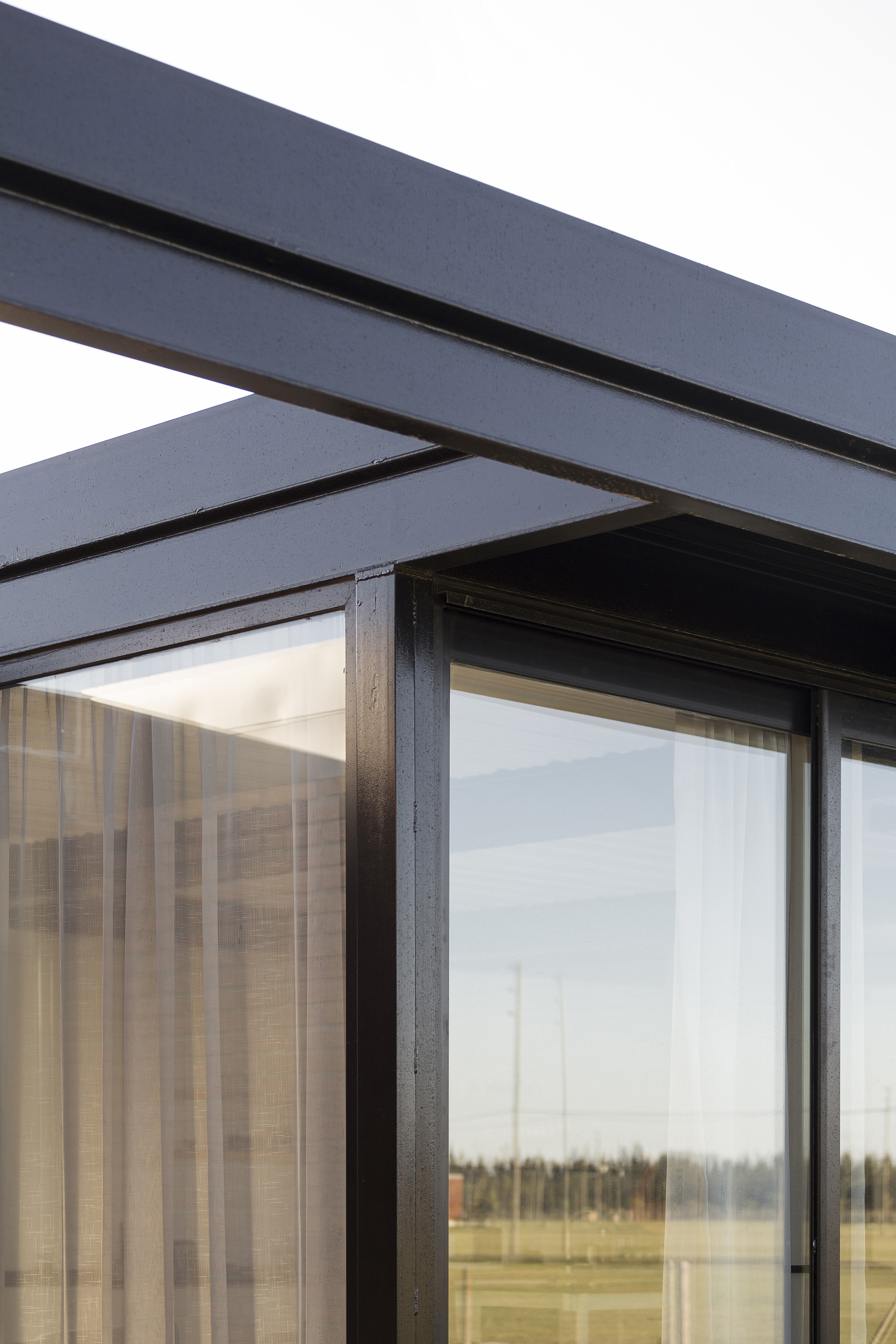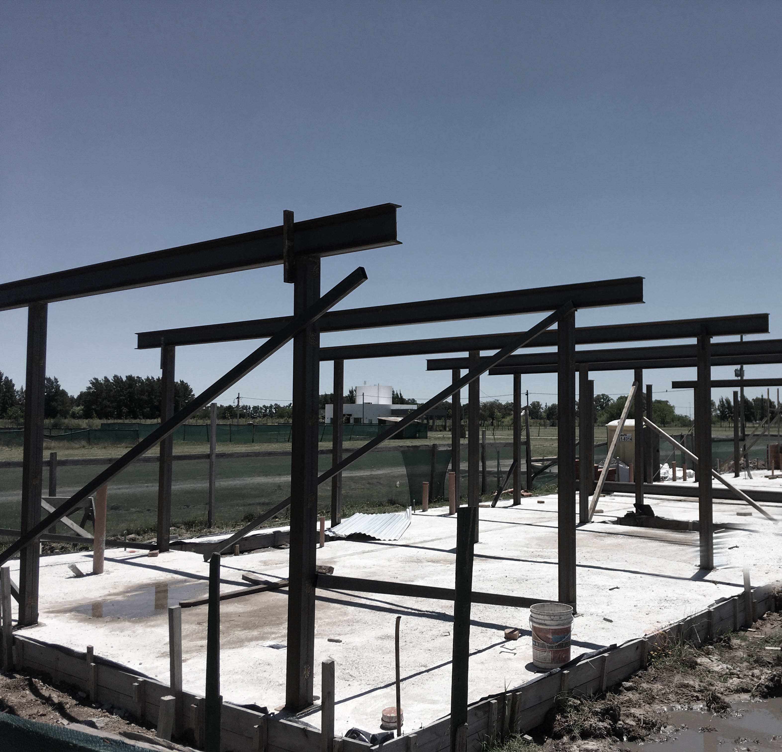 La estructura metálica como modo de optimizar los tiempos de obra. Se evidencia y se expone: perfiles metálicos laminados conforman columnas, vigas y cenefas. Una sucesión de pórticos modulados cada tres metros delimitan la sección transversal del proyecto. Ordenan, definen, sistematizan.