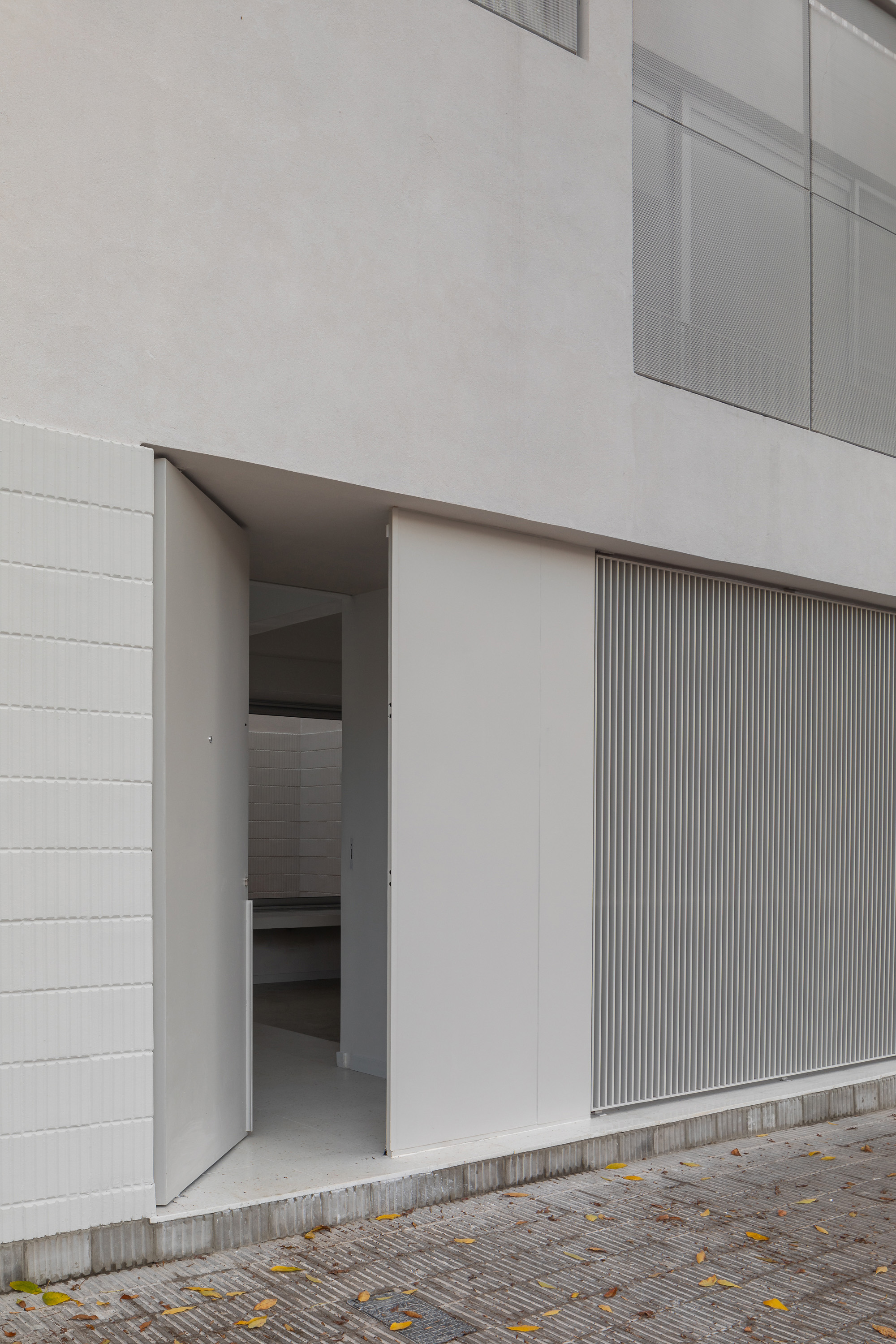 El prisma, macizo y homogéneo es socavado y genera nuevas exterioridades. El cuadrado, aunque monótono en su apariencia, cambia de escala, se combina, adquiere ritmos y tensiona. Se presenta en aventanamientos, revestimientos, solados.