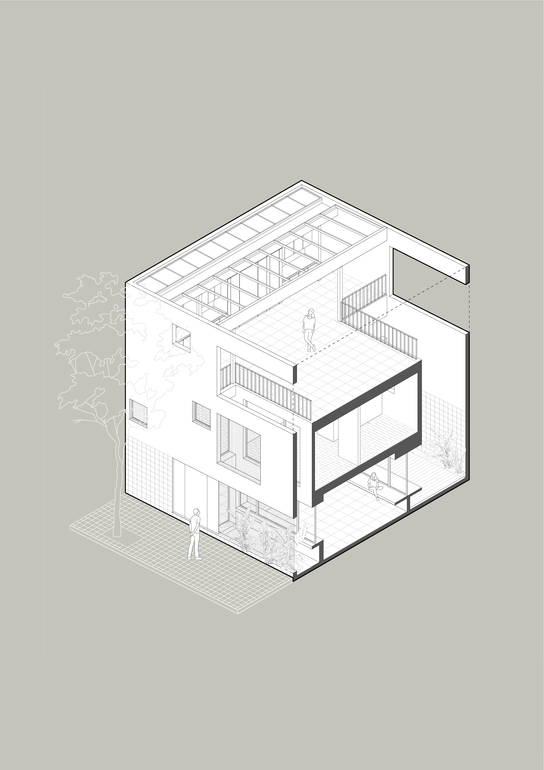 La casa York se consolida en un pequeño lote urbano ubicado a mitad de manzana. Para dar respuesta a un programa un tanto ambicioso, fue necesario considerar la superficie edificable en sus tres dimensiones para poder definir así, el máximo volumen construible. A partir de allí, decidimos operar con la sustracción para ahuecar la masa, y darle entidad al vacío, logrando así, que los espacios interiores respiren. Optamos por reemplazar el sólido por aire, incorporar allí vegetación y lograr una continuidad vertical que atraviese los tres niveles.